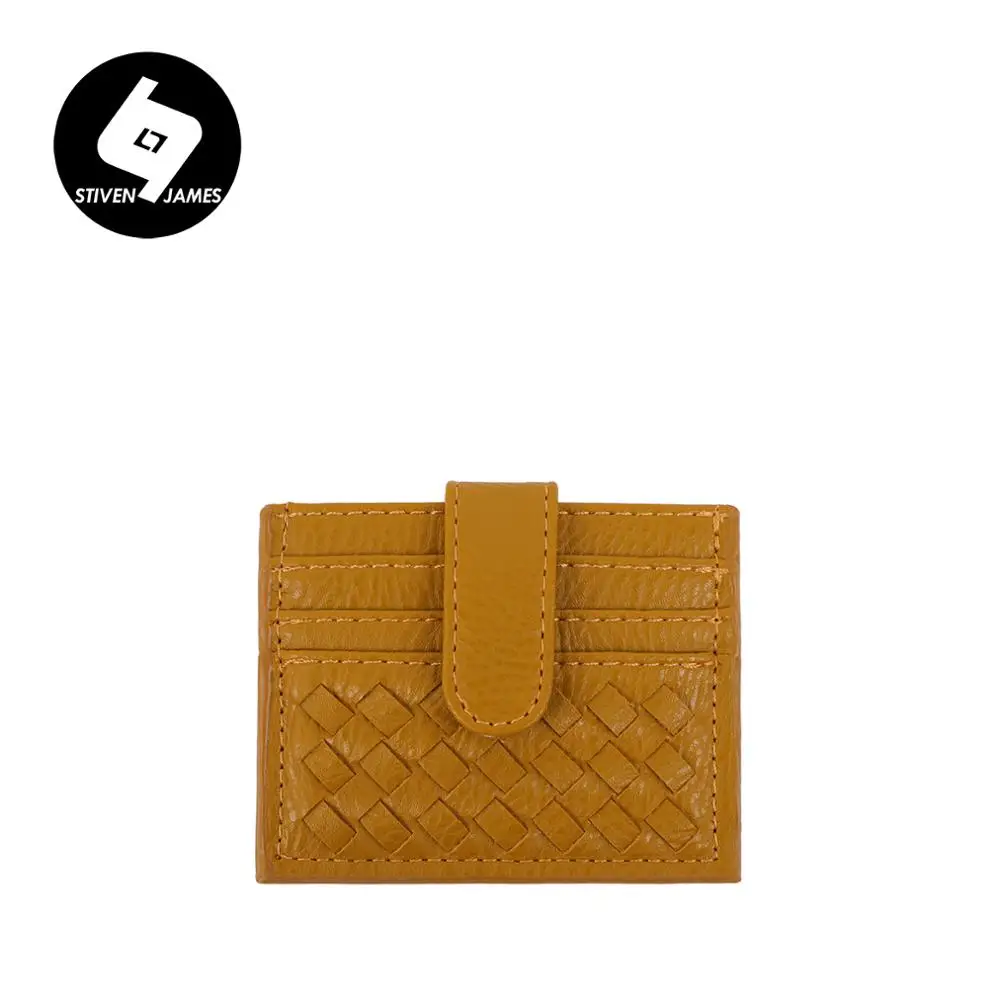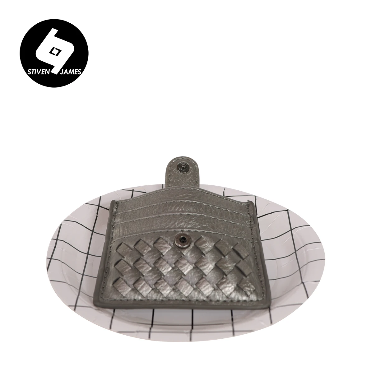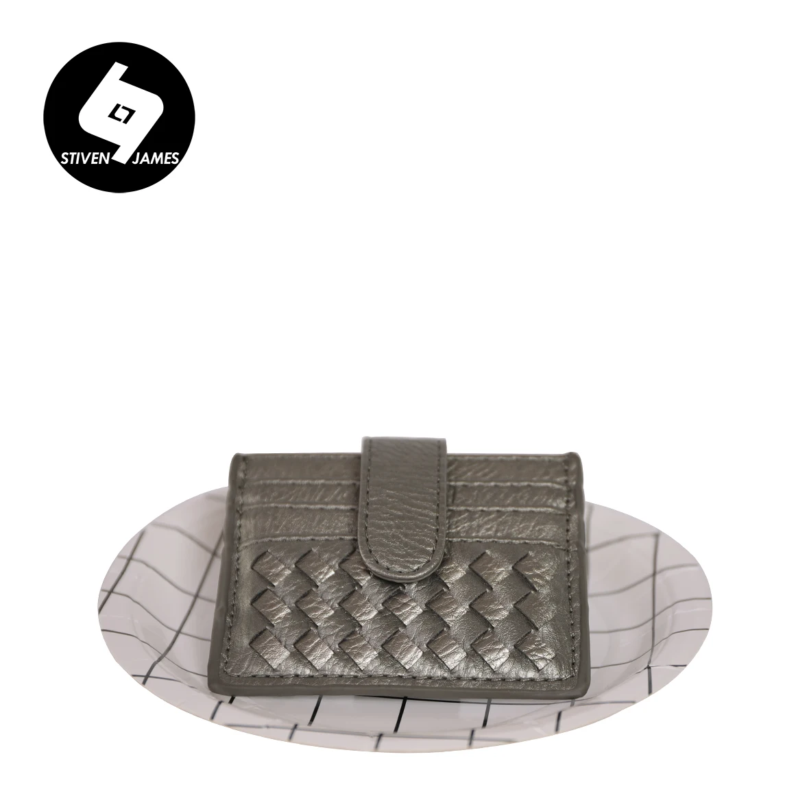 | STIVEN JAMES Credit Card Case Leather Weave Card Holders Hand Woven ID Card Holder Hand Knit Coin Wallet Women Hasp Change Purse |