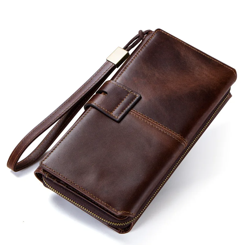| Crazy Horse Cow Leather Tri-fold Clutch Long Design Genuine Leather Wallet Man Phone Wallet Luxury Multi-card Bit Wallet Coinbag |