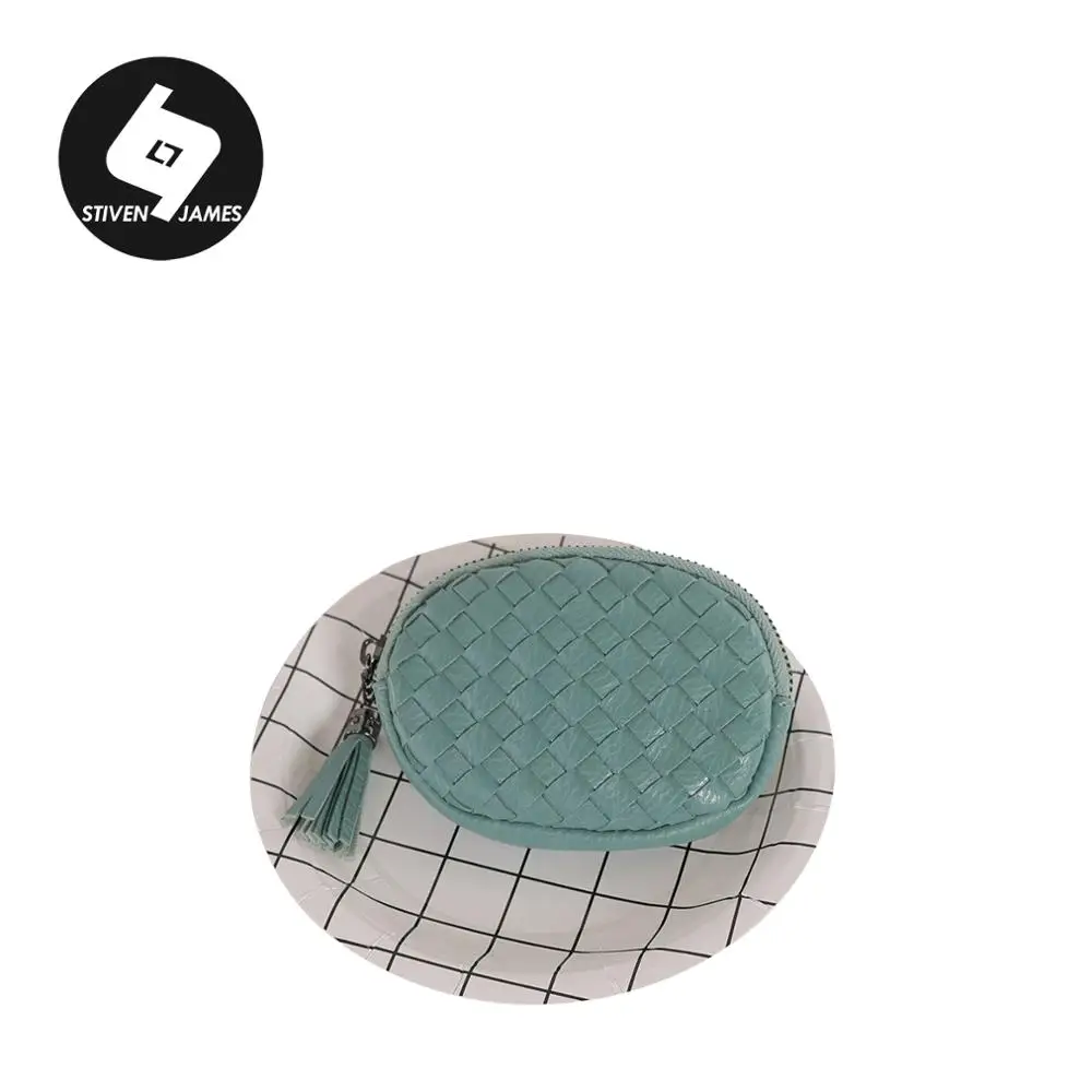 | STIVEN JAMES Hand Woven Change Purses PU Leather Coin Wallets Weave Coin Purse Wallet Women Mini Tassels Zipper Change Bag Oval |