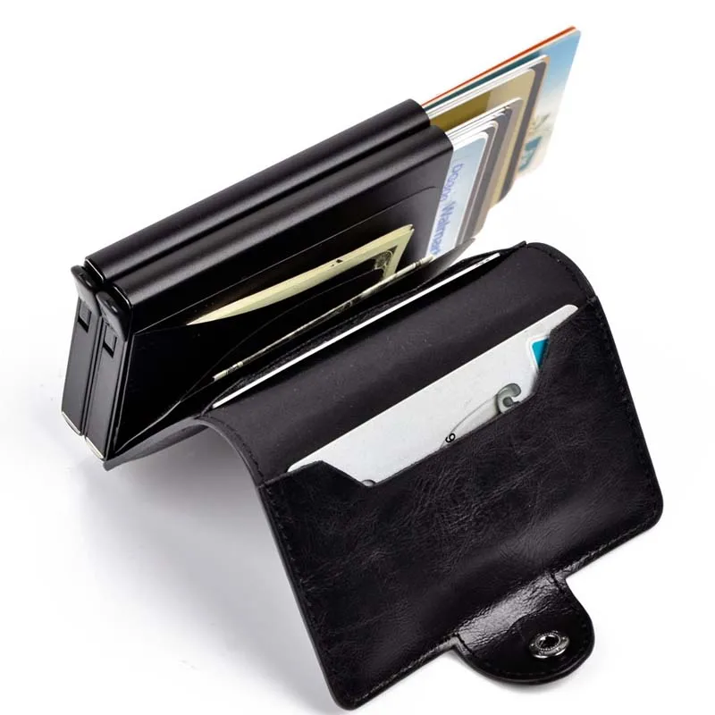 | New Fashion PU Leather Credit Card Holder RFID Metal Wallet Automatic pop up Anti-theft women Purse Business ID Cardholder |