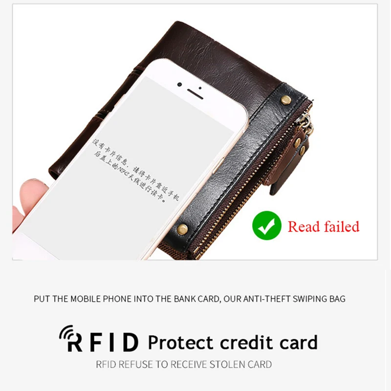 | Womens 100% genuine leather RFID vintage wallet Women with coin pocket short wallets small zipper walet card holders Men purse |