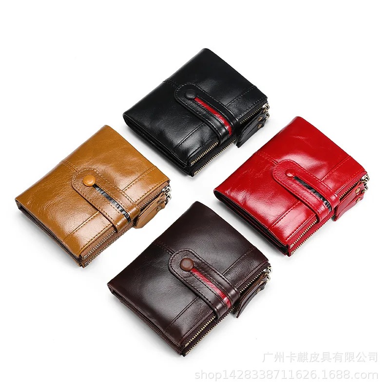 | money bag for man wallet made of nature leather short money bag dollar coin zip small purse big capacity Retro Pocket men wallet |