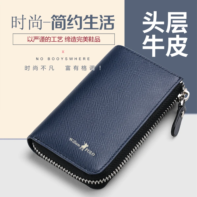 | WilliamPolo Key case full grain leather mens multifunctional key chain coin purse large capacity universal car key storage bag |
